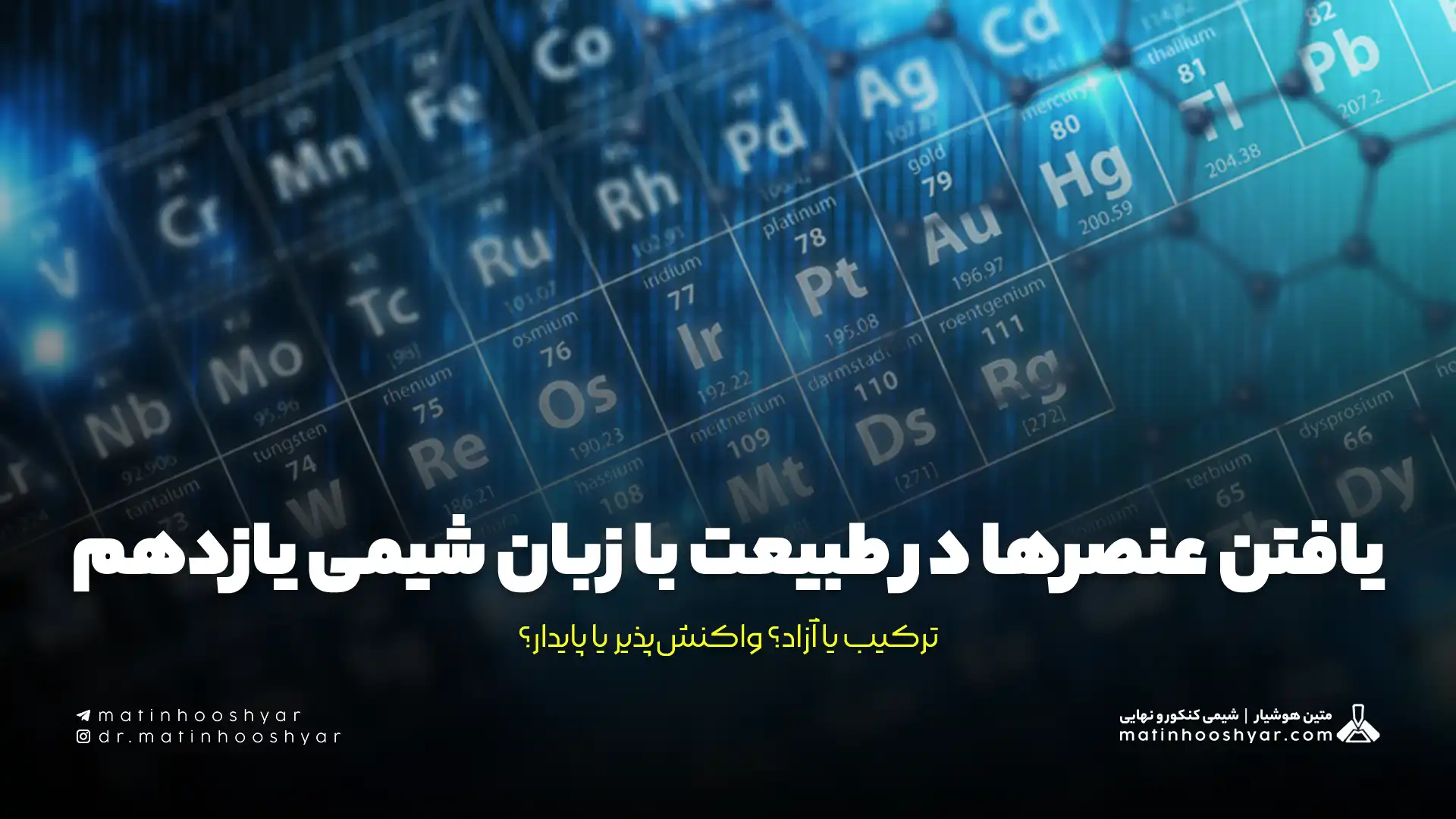 در این مقاله از فصل اول شیمی یازدهم، با نگاهی علمی و ساده، بررسی میکنیم که عنصرها دقیقاً چگونه در طبیعت یافت میشوند؛ ترکیب یا آزاد؟ واکنشپذیر یا پایدار؟ این مطلب در سایت تدریس شیمی متین هوشیار برای تو نوشته شده تا بدون پیچیدگی، پاسخ این سؤال را پیدا کنی: چرا بعضی فلزها را باید از سنگ معدن جدا کرد، ولی طلا را نه؟